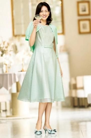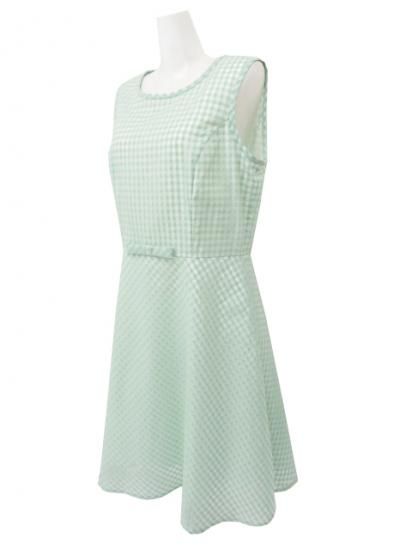 M's GRACY/エムズグレイシー シアーギンガムチェック ワンピース ミントグリーン 42 '25年 中古A1美品