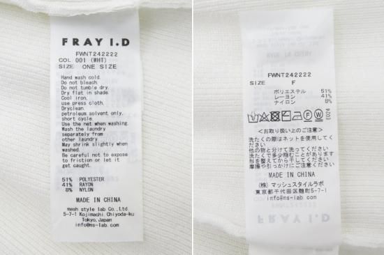新品同様 FRAY I.D/フレイ アイディー キャップスリーブ ペプラムニット ホワイト F '24年