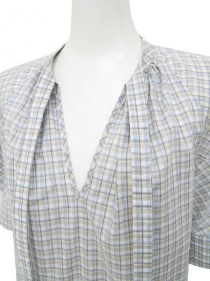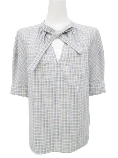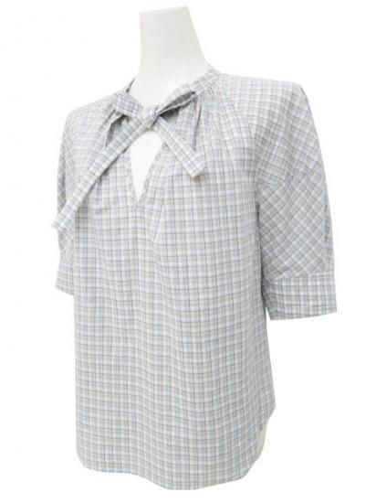 cygne/シーニュ ボウタイチェックブラウス ホワイト×ベージュ系×ライトブルー系×ブラウン系 中古A1