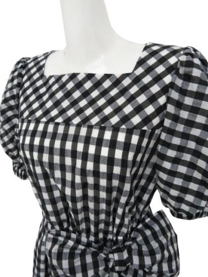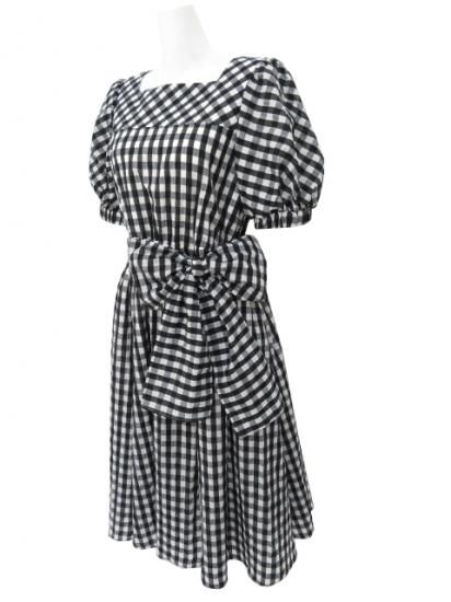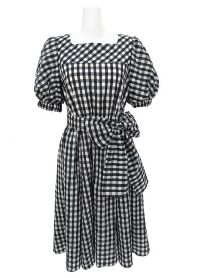 Rene ギンガムチェックドレス 共布ベルト付き ブラック×ホワイトギンガム 34 '25年 A1美品【中古】