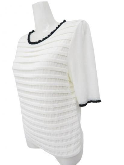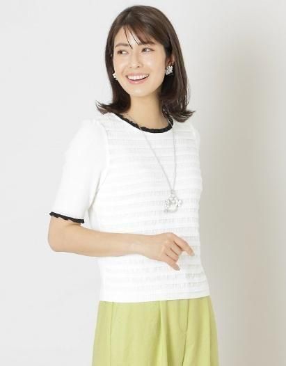 TO BE CHIC コットン ナイロン プルオーバー ニット ホワイト×ブラック 40 '25年 A1【中古】