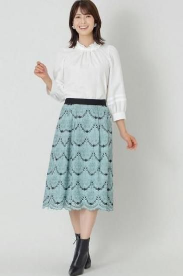 TO BE CHIC スカラップ ティアード 刺繍 スカート グリーン 40 '25年 A1【中古】