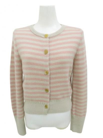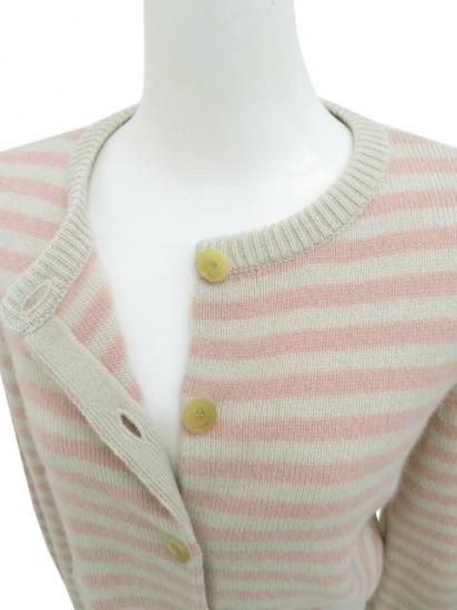 FOXEY BOUTIQUE ニットカーディガン カシミヤフレンチボーダー 43173 オイスターベージュ×ローズ 38 '22年 中古A1 #FE掲載