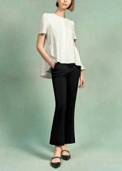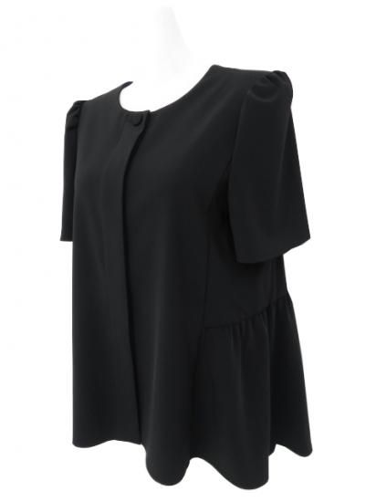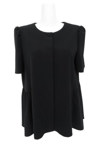コメント '25年7月FOXEY EXPRESS掲載商品!セミフォーマルな場にも最適なハーフスリーブブラウス。パンツと合わせてすっきりとお召しいただくスタイリングがおすすめです。 適度なふくらみ感のある生地を使用しているので、夏も快適にお過ごしいただけます。フロントボタン開閉。袖以外裏地あり。