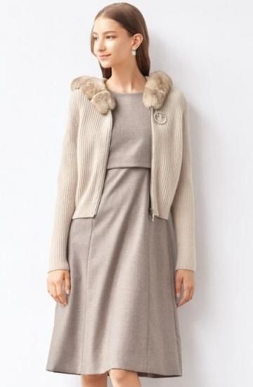 コメント '24年10月FOXEY EXPRESS掲載商品!イタリア製のウールカシミヤフラノ生地を使用したワンピース。 ハーフスリーブのトップスと台形スカートを合わせたようなデザインが特徴です。 大人の女性らしいすっきりとしたシルエットです。バックファスナー裏地あり。