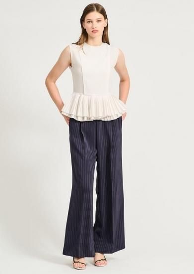 新品同様 ESTNATION/エストネーション トリアセタック ピンスト イージーパンツ ストライプネイビー 34 '25年