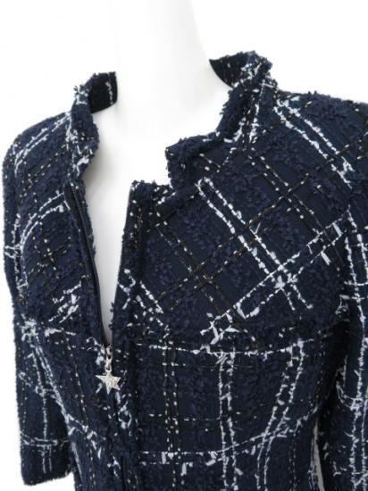 Rene ツイードドレス ネイビー××ブラック×ホワイト 38 '20年 A1【中古】