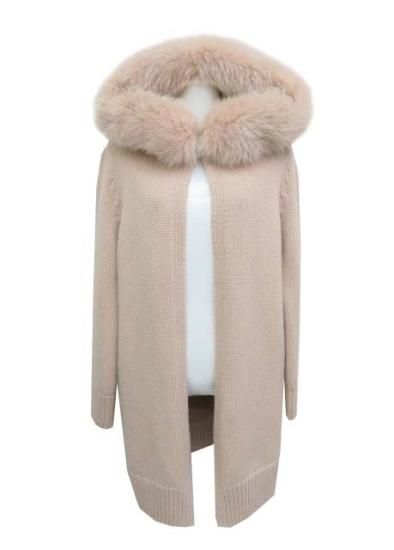 FOXEY BOUTIQUE ニットコート フォックスソレイユ 【ファー】 38516 ピンクベージュ F '18年 A1【中古】
