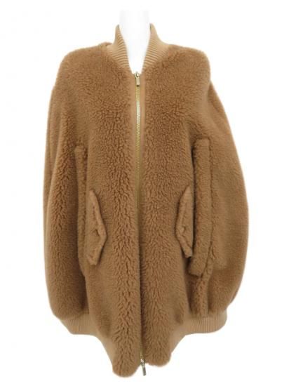 Max Mara テディベア ボンバーケープ ポンチョ キャメル×シルク ブラウン系 S A1【中古】