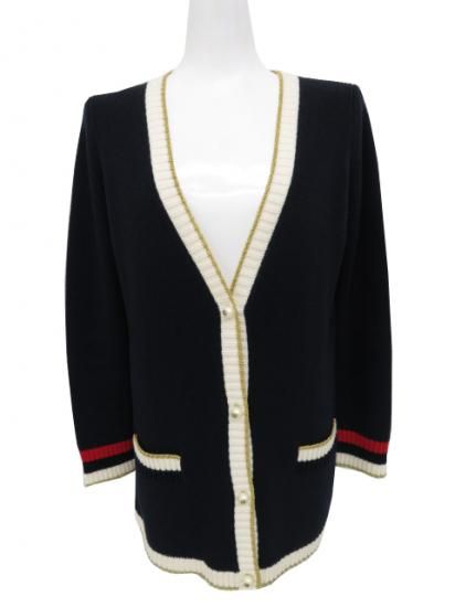 GUCCI カーディガン パールボタンにGGマーク入り ネイビー×ホワイト×レッド XS A1【中古】