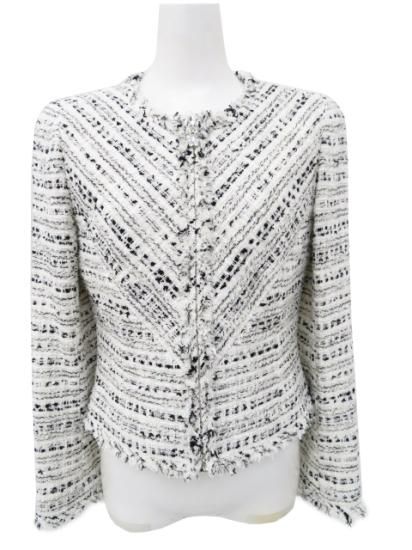 Rene ダブルジップツイードジャケット ホワイト×ブラック 36 '19年 A1【中古】